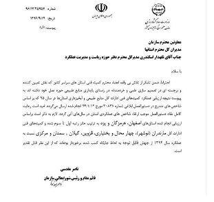 كسب رتبه دومي كشوري براي كميته فني اداره كل منابع طبيعي و آبخيزداري هرمزگان